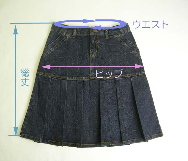 ●●● スカート ●●● ※ウエストは立体採寸・それ以外は置いた状態で採寸しています ・ウエスト…ウエストラインに添って内側一周の長さを計測 ・ヒップ…ウエストラインから18cm下の両脇幅を計測し、 それを2倍して表示 ・総丈…ウエストラインから裾までの長さを計測 |